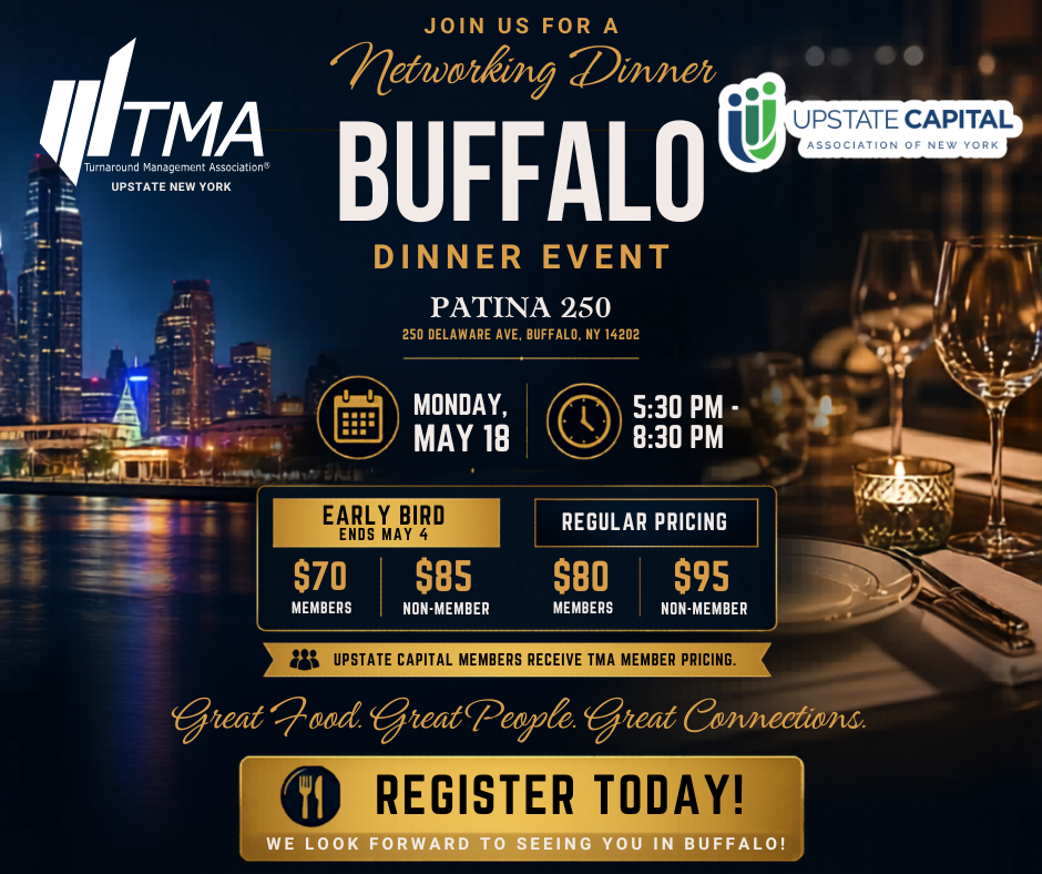 Join the Upstate New York Chapter of the Turnaround Management Association for a special evening in Buffalo in collaboration with Upstate Capital Association of New York.