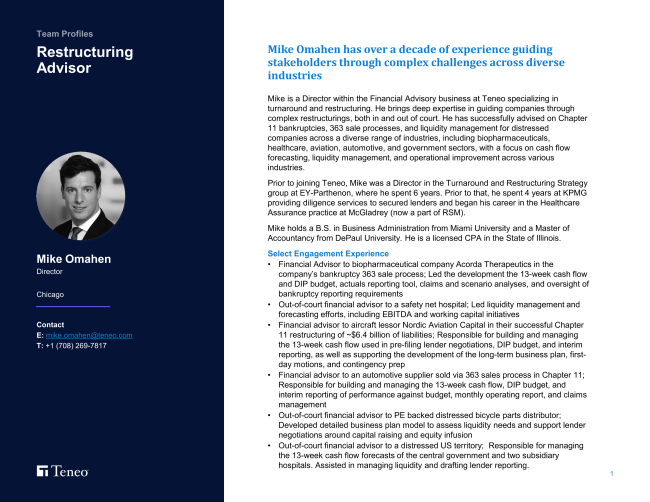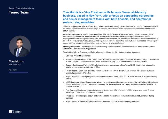 Join the Turnaround Management Association for a practical webinar led by Mike Omahen (Director, Teneo) and Tom Morris (Vice President, Teneo) that focuses on how 13‑week cash flow forecasts are built, interpreted, and used in real‑world turnaround and restructuring situations.