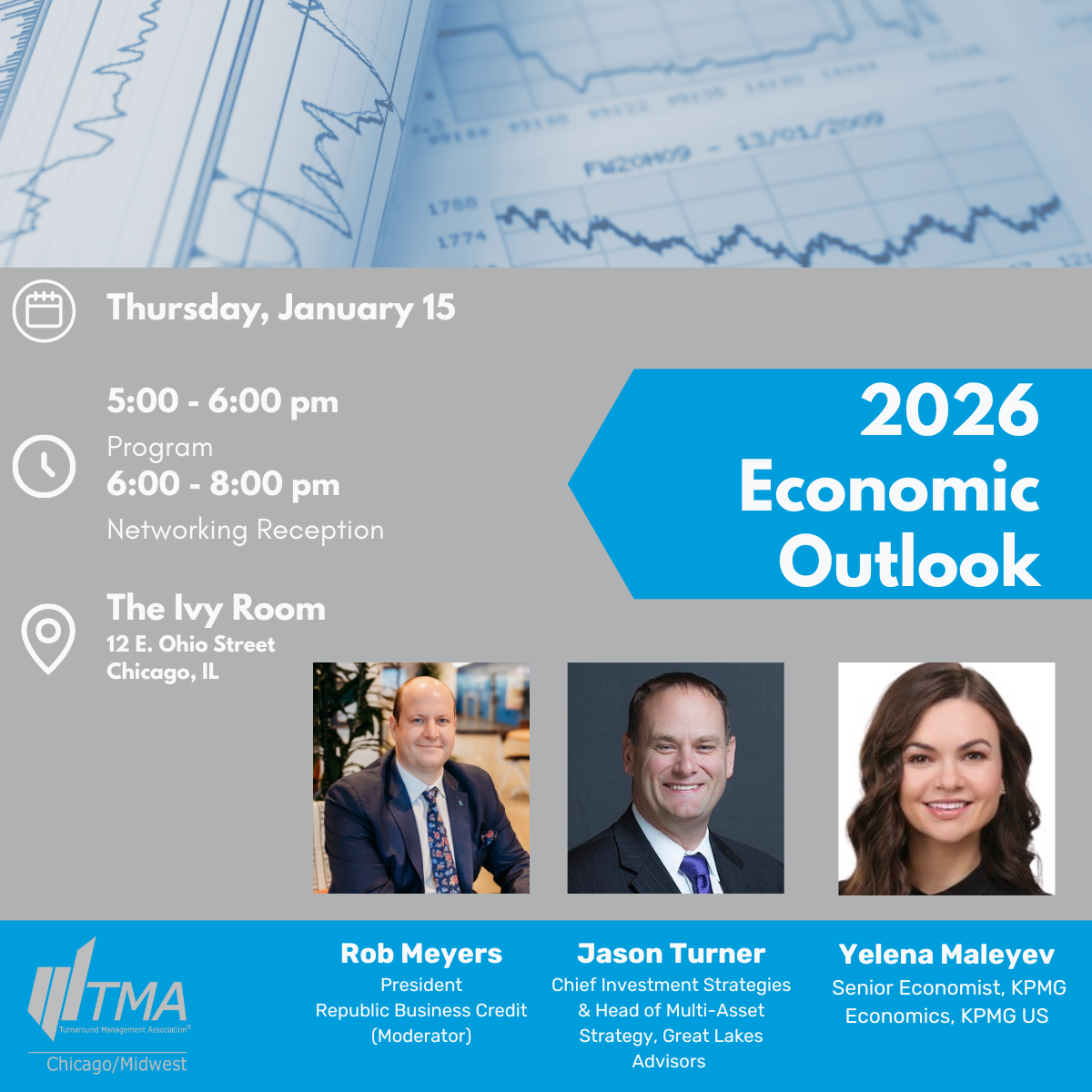 REGISTRATION NOW OPEN for the 2026 TMA Chicago/Midwest Economic Outlook! The education session will take place from 5:00pm - 6:00pm followed by a 2 hour networking reception at The Ivy Room.