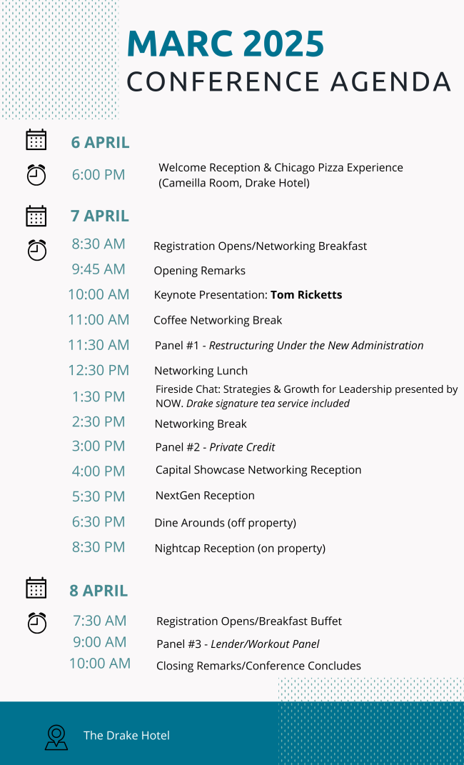 The Capital Showcase will take place on Monday, April 7th. We anticipate that MARC will bring together 200+ individuals from private equity firms, alternative lenders, commercial lenders, consultants, turnaround specialists, and lawyers to facilitate potential deal flow, exchange ideas, and hear the latest trends. If you'd like to participate in the Capital Showcase, please contact minnesota@turnaround.org for more information