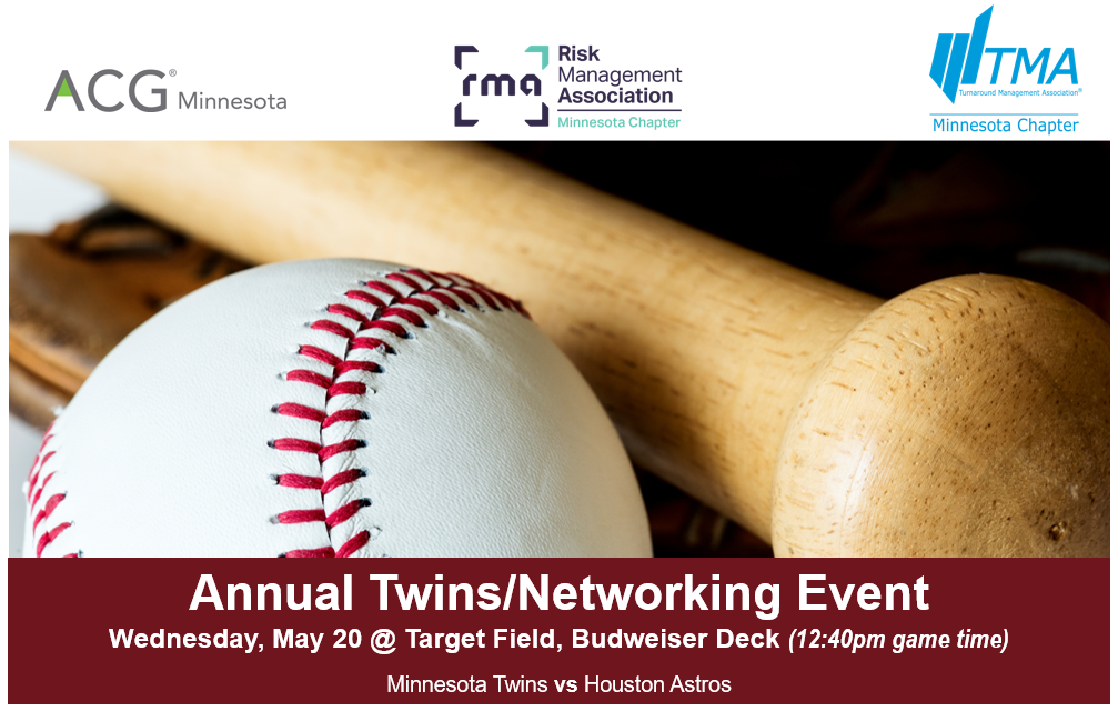 Join us on Wednesday, May 20th for our annual Twins outing, hosted by the Minnesota Chapters of the ACG, RMA and TMA.