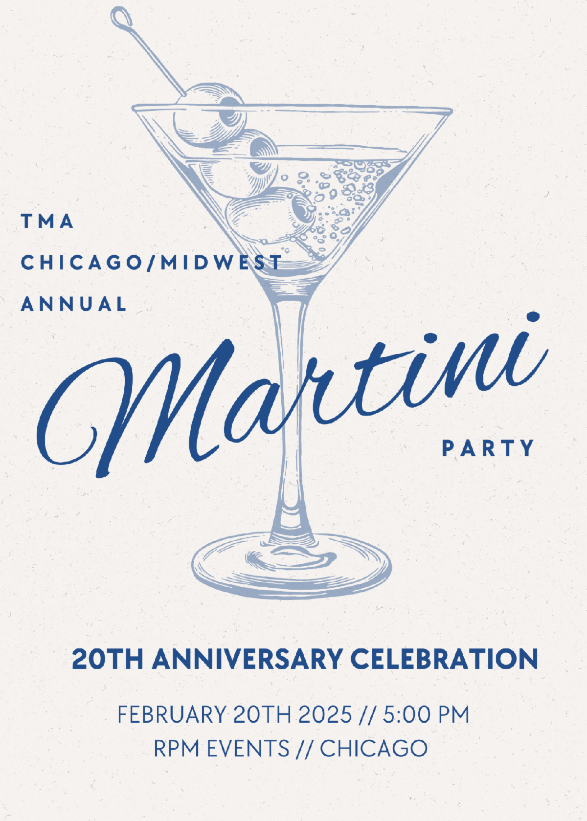 In celebration of the 20th Annual TMA Chicago/Midwest Chapter Martini Party, donate $20 to the TMA Scholarship Foundation today to be entered in a drawing to win a FREE event registration to the party!