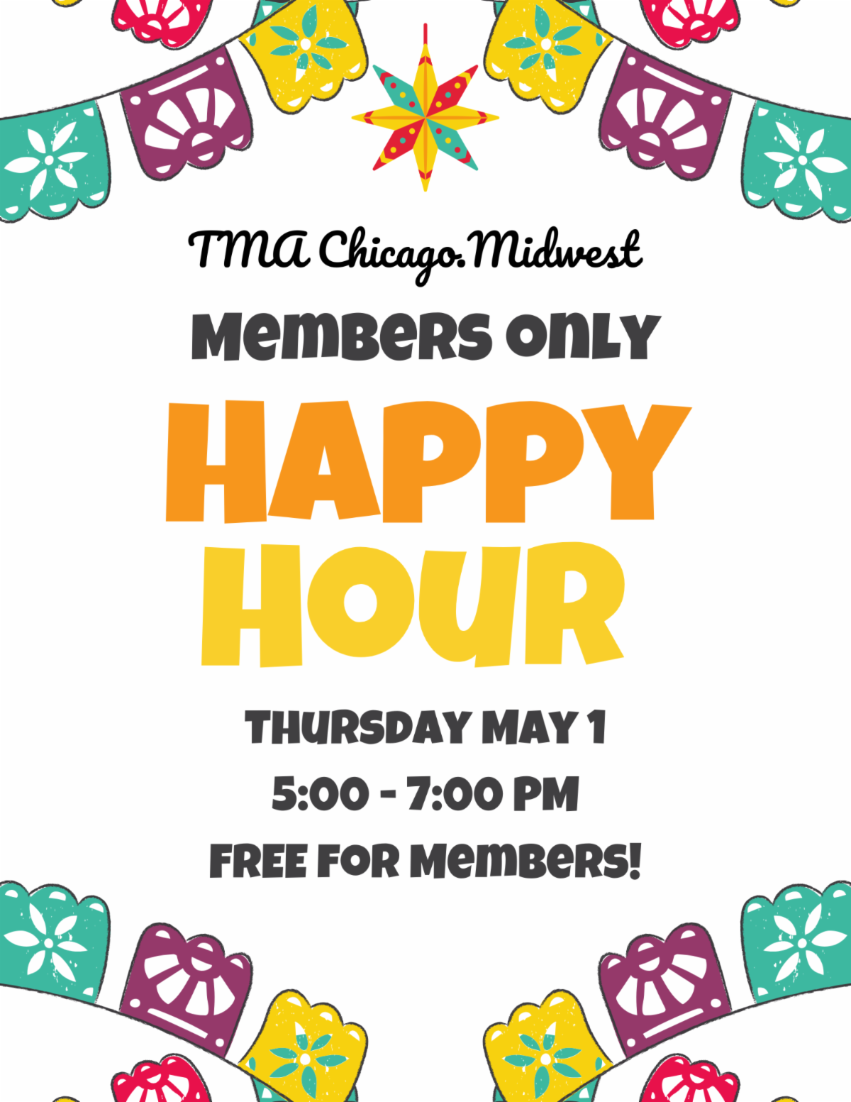 The Chicago/Midwest Chapter invites you to a Members Only Happy Hour on Thursday, May 1st from 5:00 PM to 7:00 PM at Barrio in Chicago.