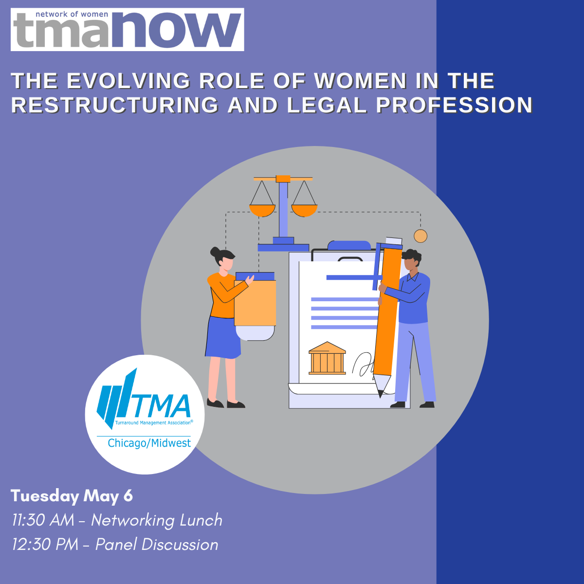 Join the TMA Network of Women and the Education Committee for an engaging roundtable discussion, where we will explore themes in bankruptcy and restructuring, while highlighting the unique journey and challenges faced by women in the judiciary profession. Our panel will reflect on the progress women have made, the impact of recent economic shifts, and the obstacles still present today. The panel will also discuss mentorship, work-life balance, and strategies for overcoming career hurdles, with advice and insights valuable to all professionals.