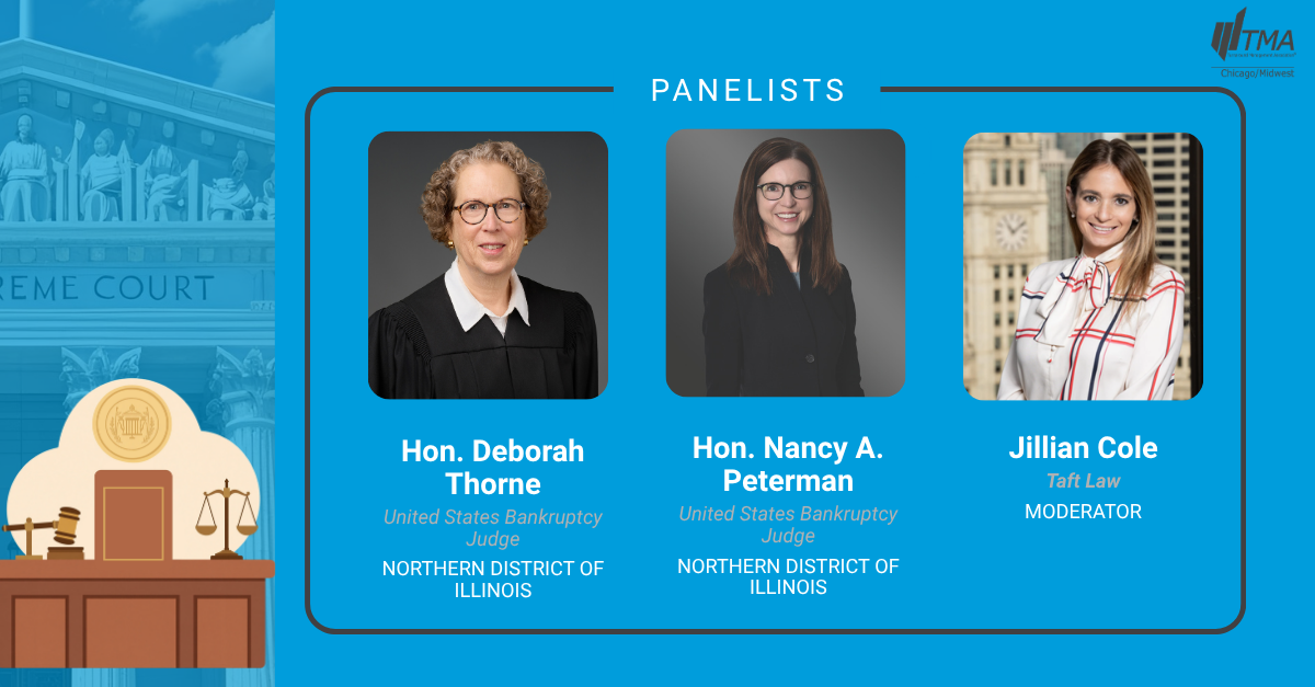 Join the TMA Chicago/Midwest Chapter for an engaging roundtable discussion with a distinguished panel of bankruptcy judges on the latest developments in restructuring and insolvency. This session will offer practical insights into emerging legal trends, strategic considerations shaping today’s distressed landscape, and a unique dynamic of veteran and new perspectives of the courtroom. Designed for attorneys, financial professionals, and turnaround experts, this program provides a exclusive opportunity to hear directly from the bench.